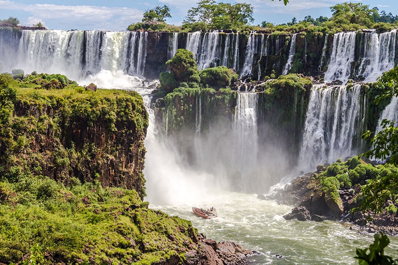 Вас ждет насыщенная экскурсионная программа. Водопады Фоз де Игуассу, находящиеся на границе Бразилии, Аргентины и Парагвая – это 275 огромных водяных потоков, обрушивающихся со страшной высоты. Водопады находятся на территории национального парка с уникальной флорой и фауной, возникли в результате вулканического извержения и смещения земных пластов. 275 водопадов, каждый из которых имеет свое название, низвергаются с грохотом в ущелье «Горло дьявола». Удивителен контраст между спокойным и даже ленивым течением вод реки Игуассу выше водопадов и мощным низвержением бурлящих потоков воды с высоты 72 метра в пропасть.