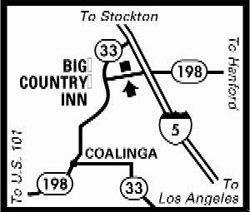 The beauty of Mother Nature is right in your back yard when you select this Coalinga hotel nestled in the heart of the real California. A couple of things define the region around this Coalinga hotel. The Annual Horned Toad Derby Carnival and WHAMOBASS Hot Air Balloon Festival draw crowds from around the country. There's something to be said about the kind of excitement that surrounds traditional fun. These unique events aren't the only thing happening near our Coalinga hotel. The Lemoore Naval Air Station hosts a few must-see events, while the Harris Ranch Restaurant dishes up fine dining with local ingredients. If you're searching for the best all-American meal of your life, there's no reason to search any further. Fun and games are endless at the local Tachi Palace Hotel & Casino. However, you've already won the jackpot by discovering a Coalinga hotel that treats every guest like family. Whether you're in town for the Coalinga State Hospital or West Hills Community College, a touch of home is the trick for a relaxing, revitalizing stay. Many business travelers call our Coalinga hotel their home away from home. We are proud to host employees of the State Department of Corrections at Pleasant Valley as well as local colleges and hospitals. Our service men and women are special, regular guests. Nothing gets you ready for the work day better than a complimentary full breakfast featuring piping hot eggs, stacks of fresh fruits and sweet pastries, a selection of cereal and yogurt, and gourmet coffee. Don't forget to dedicate some time to exploring and recreation. The Tulare County Fair is an absolute must. The R.C. Baker Museum, Benitoite California State Gem Mine, Coalinga Cinema Reel Time Entertainment, and rodeos and bike races are all popular. There's no end to the options near this comfortable Coalinga hotel. What's on your agenda? Reserve your spacious accommodations at BEST WESTERN Big Country Inn and prepare to be pampered!