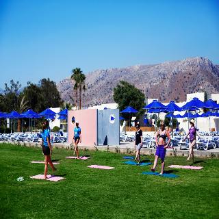 The beach resort lies directly on the beach of Amoudara, 7 km from the centre of Heraklion. The centre of Amoudara is within walking distance while the city centre of Heraklion is 20 minutes away by public transport. Heraklion International Airport is situated at a distance of approximately 12 km.||Comprising a total of 259 guest rooms, the property welcomes guests in a lobby with 24-hour reception and check-out service. The hotel offers a non-smoking restaurant, self-service restaurant, café, main bar, pool bar, beach bar & wine bar, amphitheatre, meeting facilities, parking, shops and a children's club and playground. In addition, lift access, wi-fi access in all premises and a laundry service are provided. For a gentler pace guests can enjoy electronic games or relax in the TV room.||All the rooms are spacious and tastefully furnished to provide a pleasant and comfortable stay. They are equipped with a refrigerator and individually controlled air conditioning and heating, as well as a hairdryer, satellite flat 32''TV, safety deposit box and a balcony or terrace. The en suite bathrooms are fitted with a shower and bath. Double 7 twin beds, a direct dial telephone also feature as standard.||There are plenty of recreational facilities on offer within the complex. There are 2 swimming pools one with waterslides and 1 paddling pool for kids, parasols and sun loungers around the pools on the sun terraces and the beach (sun loungers & umbrellas free of charge). In addition 2 tennis courts, a basketball court, table tennis, beach volley, pool/snooker are available. A variety of water sports are available nearby. A daily and evening entertainment programme is arranged for adults and children. Spa center with massages, Sauna, steam bath, jaguzzi etc. are also provided on site.||The hotel offers a variety of beverages served in all bars, while breakfast, lunch and dinner buffets are served at the main restaurant of the hotel or with reservation at the beach tavern.|